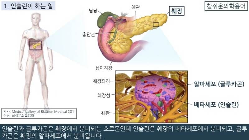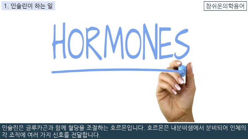 인슐린은 글루카곤과 함께 혈당을 조절하는 호르몬입니다. 호르몬은 내분비샘에서 분비되어 인체의 각 조직에 여러 가지 신호를 전달합니다.