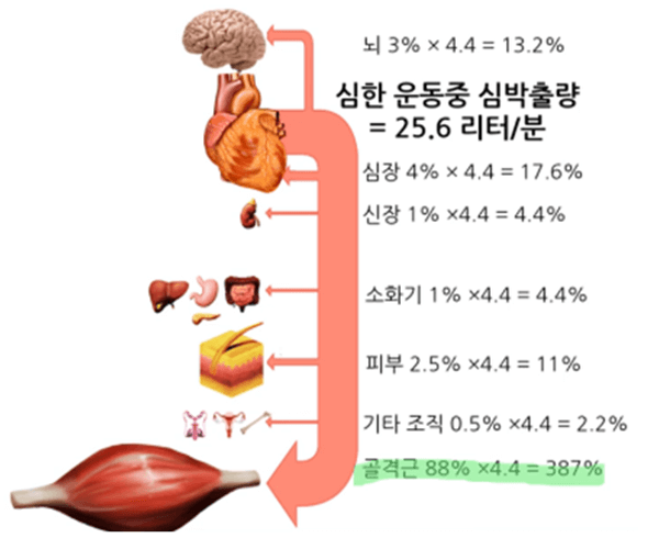 그와 동시에 말초혈관을 수축시켜서 말초로 가는 혈액량을 줄이고 그렇게 확보한 혈액을 근육과 심장과 뇌로 보냅니다. 그 결과 피부, 소화기, 비뇨기, 생식기로 가는 혈류는 줄어들지만 순환혈액량이 증가하여 고혈압이 됩니다.
